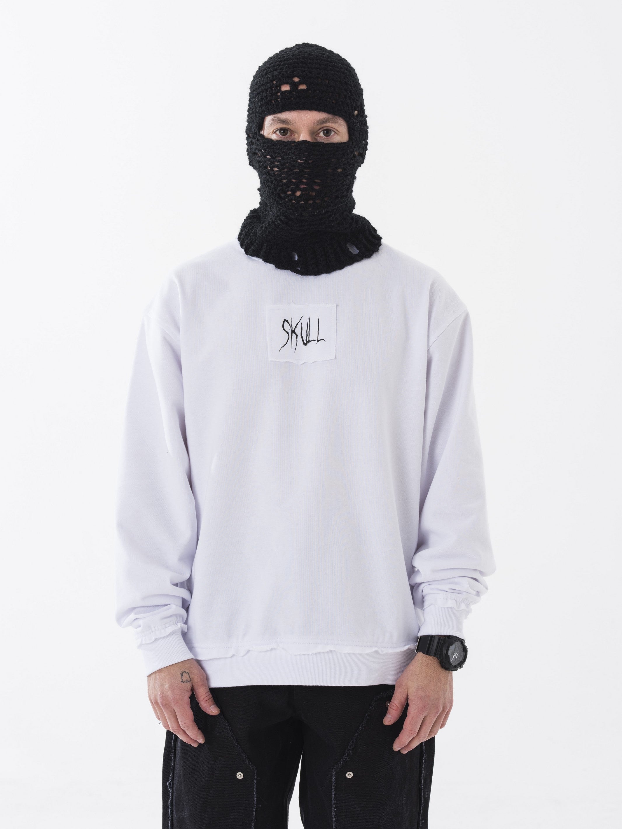 - OPIS PRODUKTU- Crewneck z dużym printem czaszki na plecach z pierwszego dropu NLP. Na przodzie małe logo. Surowe wykończenia na bluzie dodają bluzie charakteru. Produkt w jakości PREMIUM.