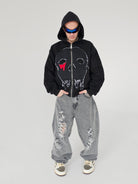 Destroyed skull zipper hoodie