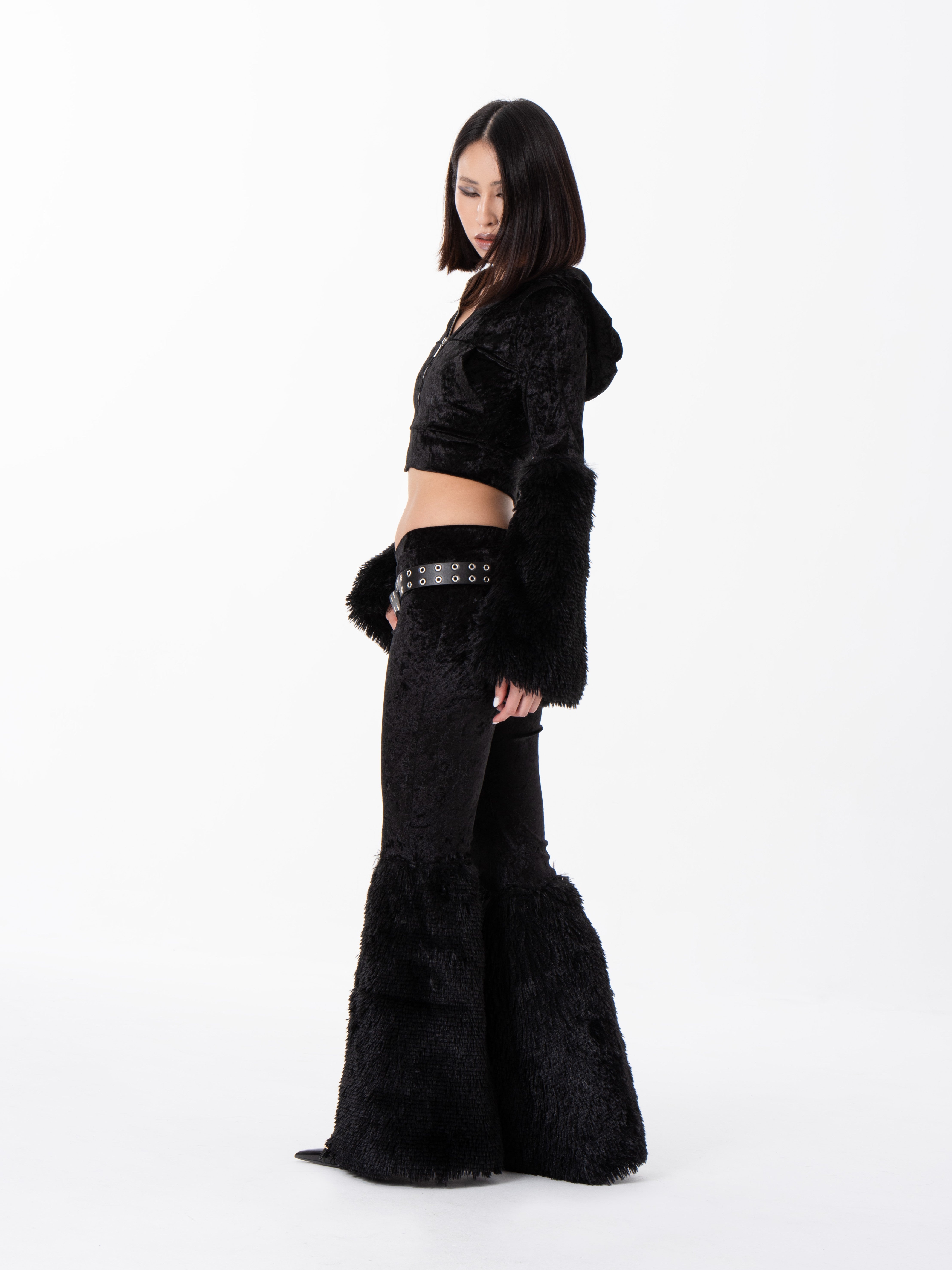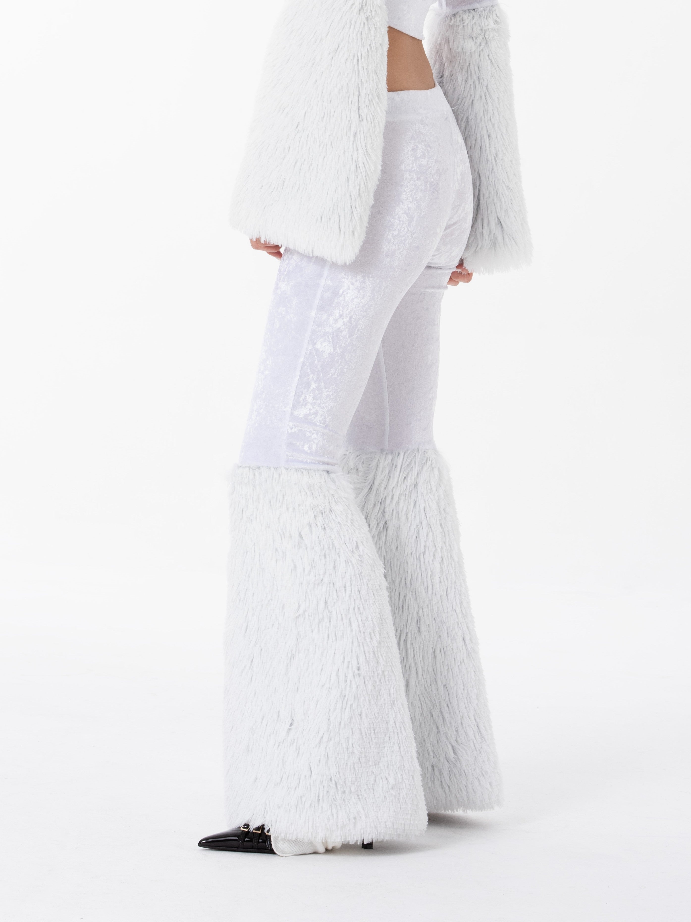 • OPIS PRODUKTU- Unikalne spodnie biodrówki z nogawką dzwon, zakończone futrem z długim włosem. Spodnie wykonane z lodowego weluru, który ma połyskującą fakturę jak lód. Spodnie w stylu Y2K w świetnej jakości i wykonaniu premium. Spodnie są elastyczne, dopasowują się do figury.