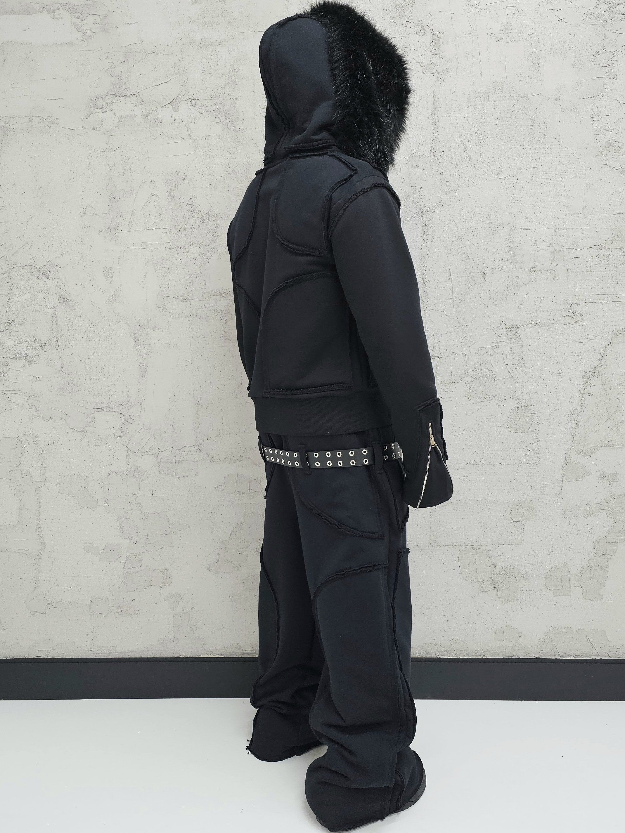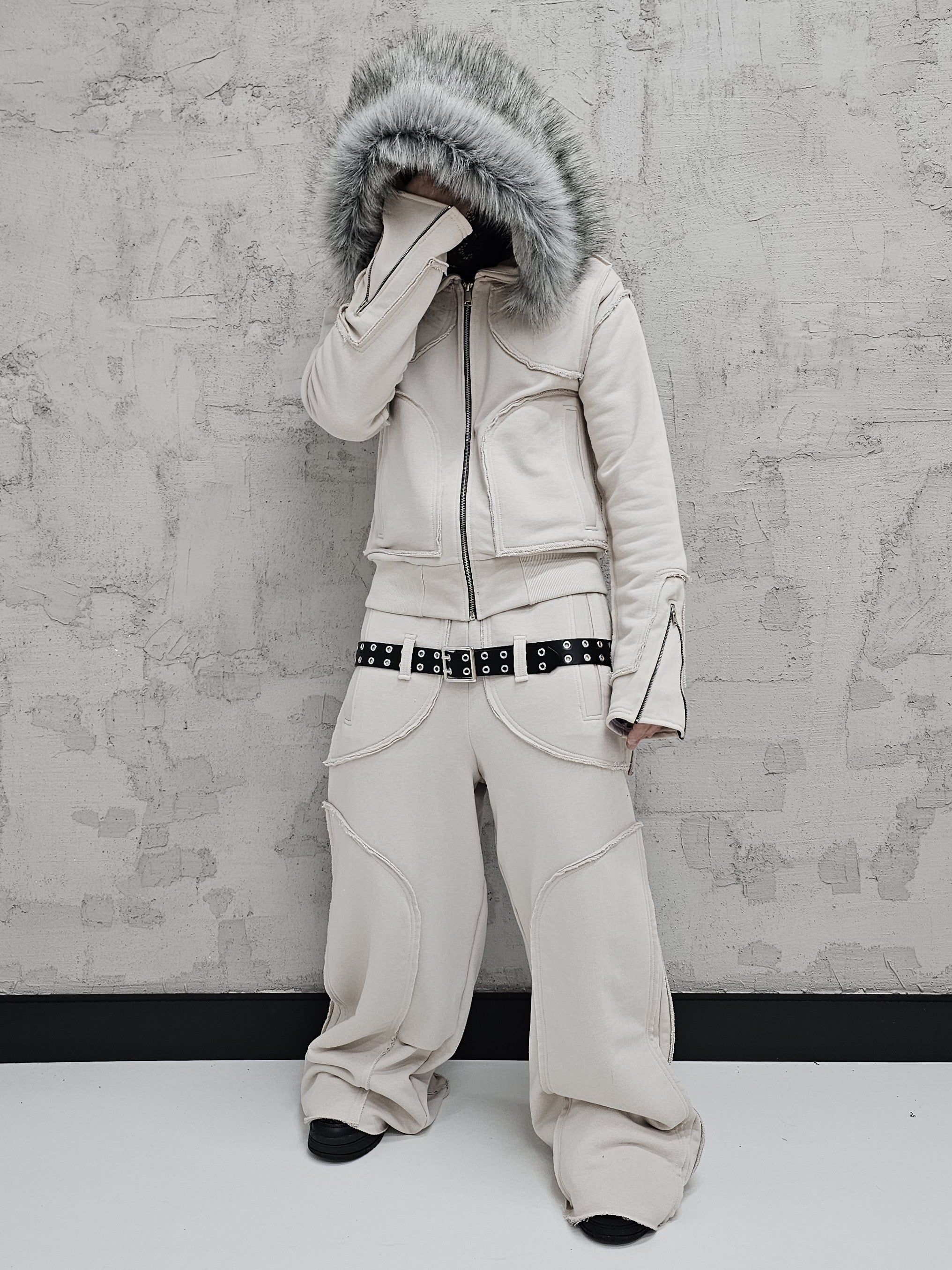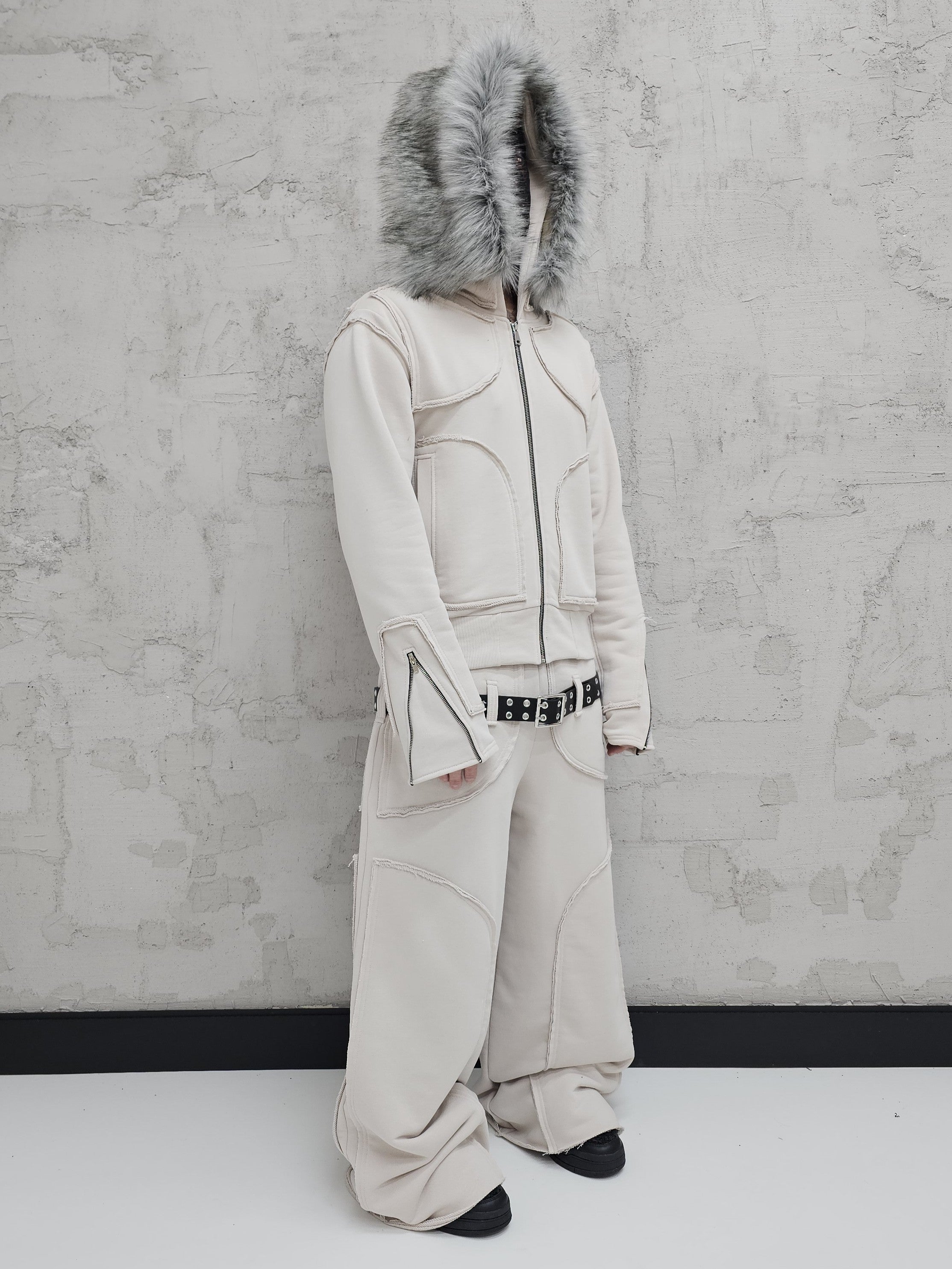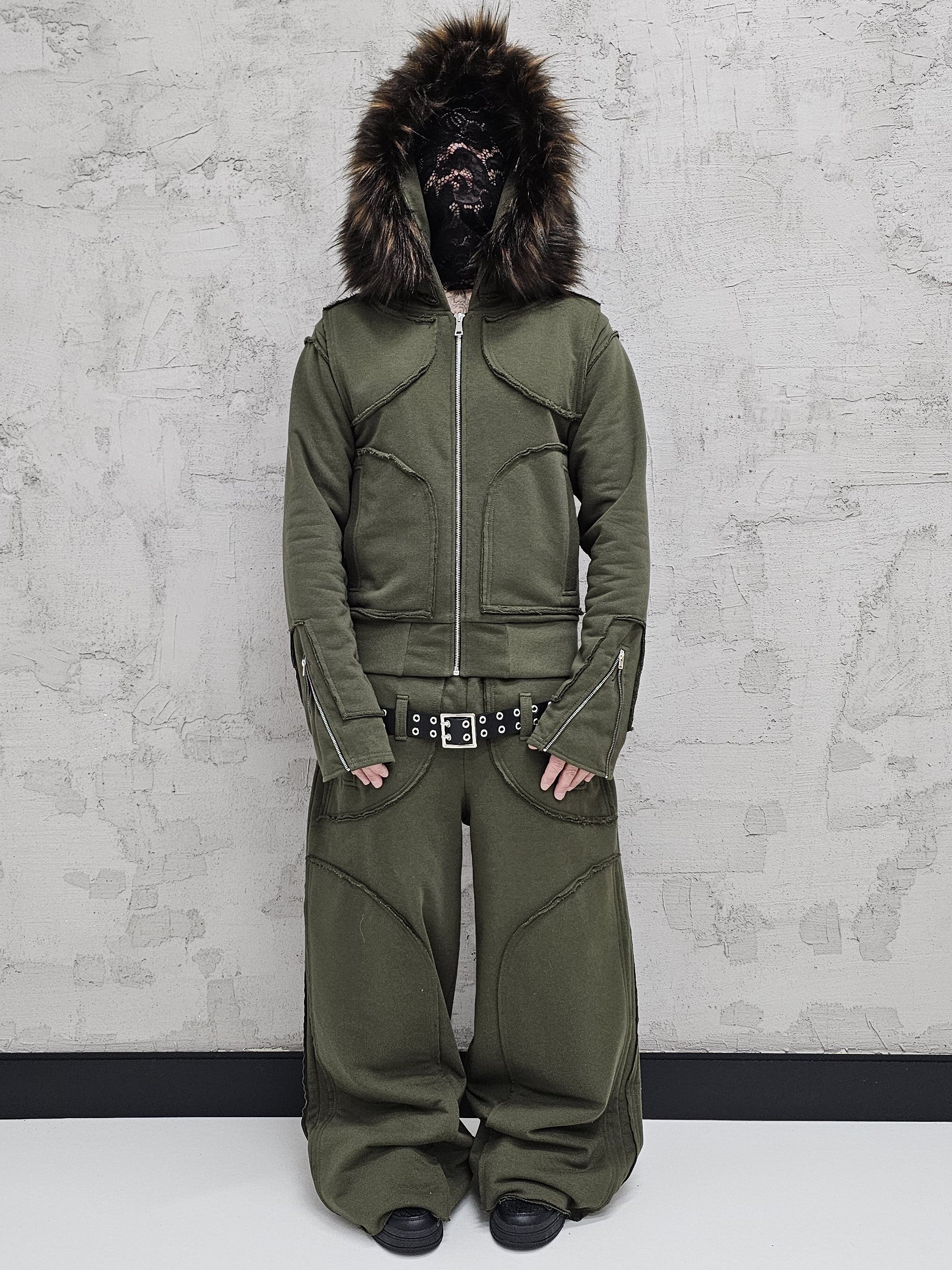 - OPIS PRODUKTU-TO JEST PREORDER, WYSYŁKA SETÓW Z DROPU OZ3LL BĘDZIE REALIZOWANA PO 11.02.2026. KUPUJĄC W PREORDERZE MASZ RABAT 15%- Set z dropu /OZ3LL. Warstwowa, bardzo gruba bluza z odpinanym futrem. Stalowe zamki na rękawach, którymi można regulować obwód rękawa. Zapinana po całości z stalowy zamek. Surowo naszyte warstwy o geometrycznych kształtach. Kaptur z szerokim, dużym futrem, które można odpiąć. Warstwowe, bardzo grube spodnie z naszytymi elementami o surowym wykończeniu. Spodnie z niskim stanem i szlufkami na pasek. Konstrukcja nogawki pozwala je skrócić pod wymaganą długość. Limitowany drop.