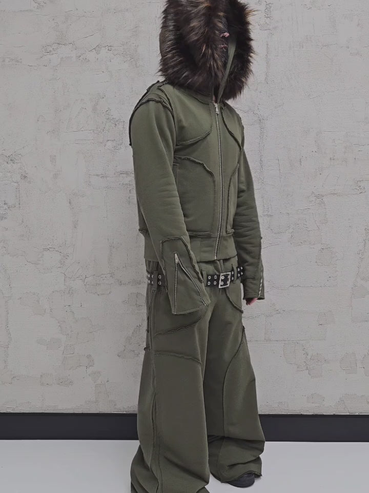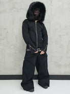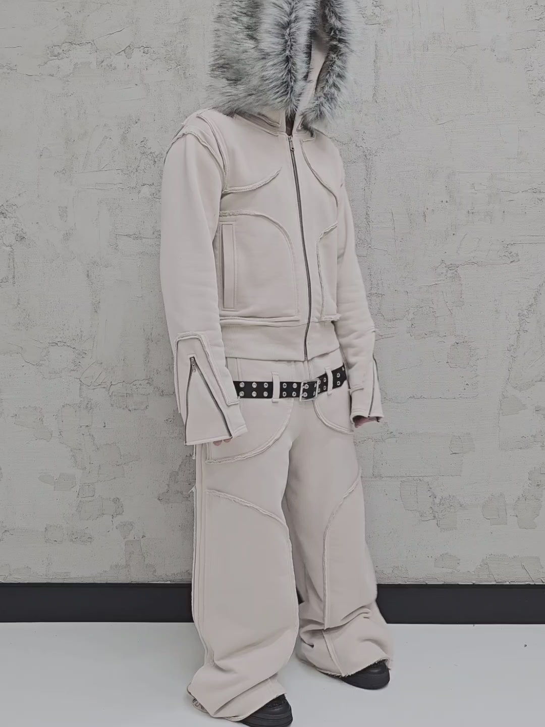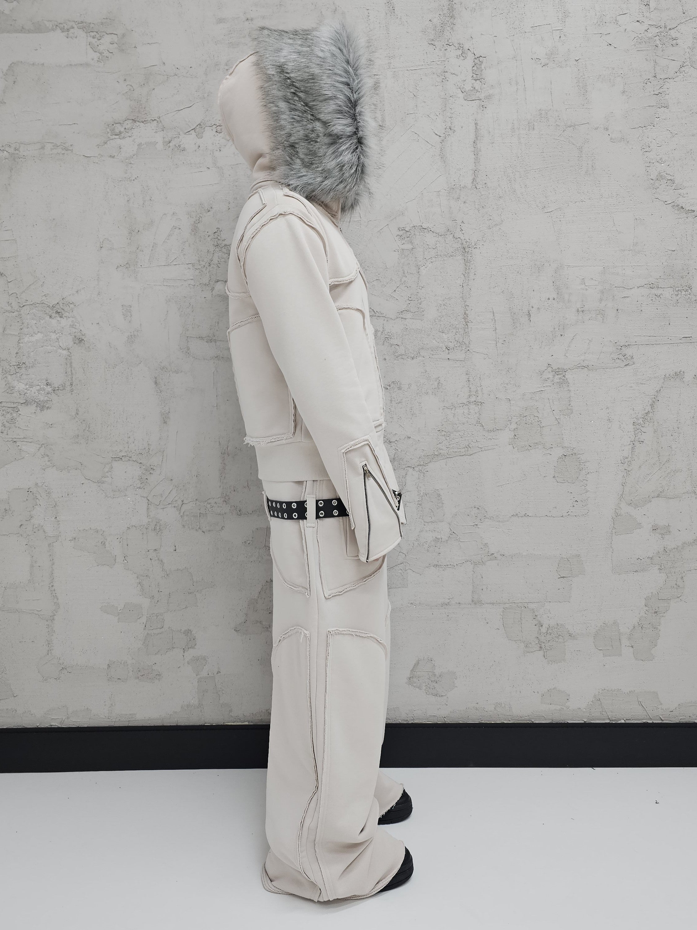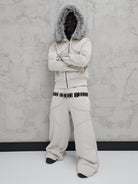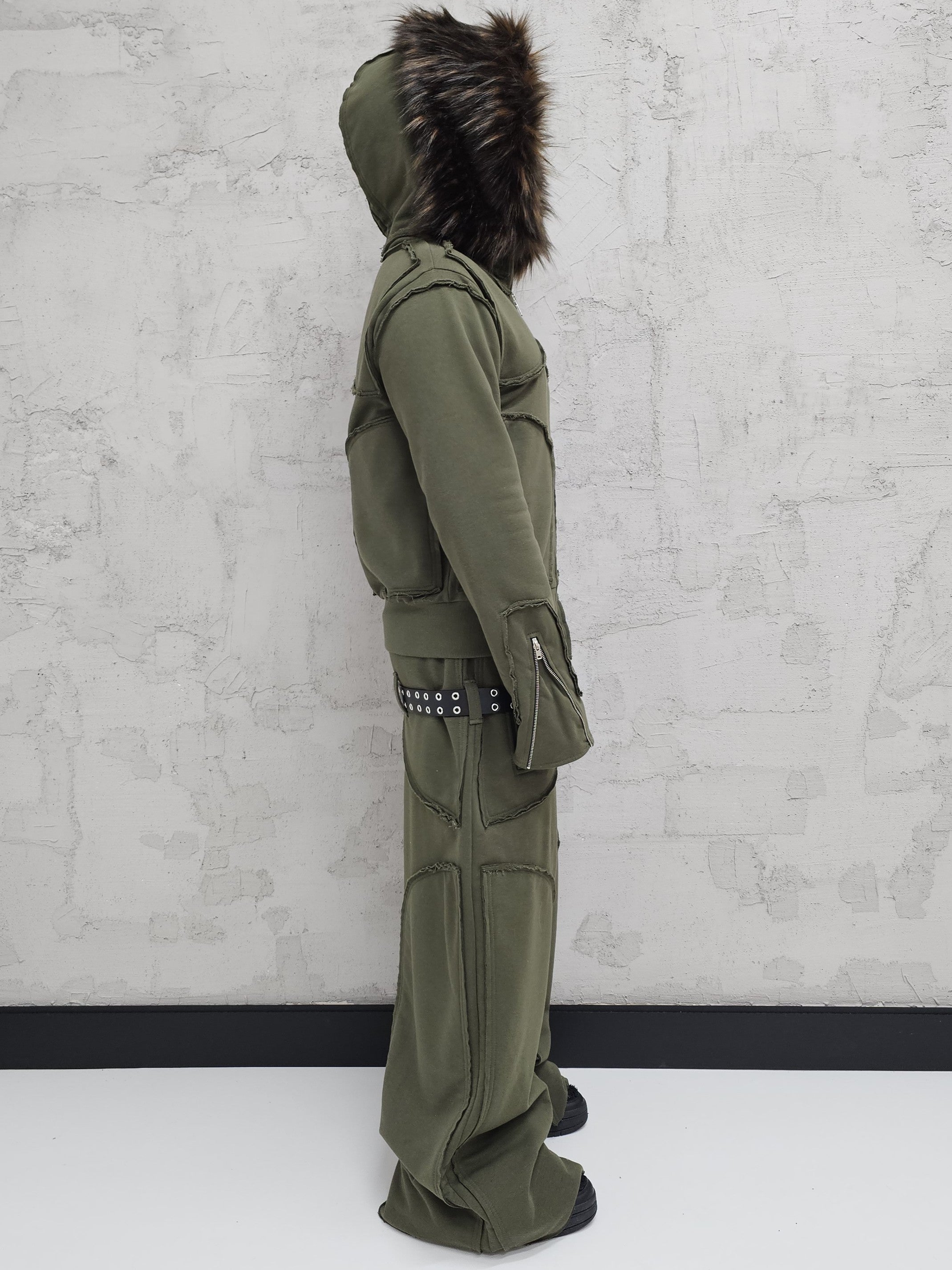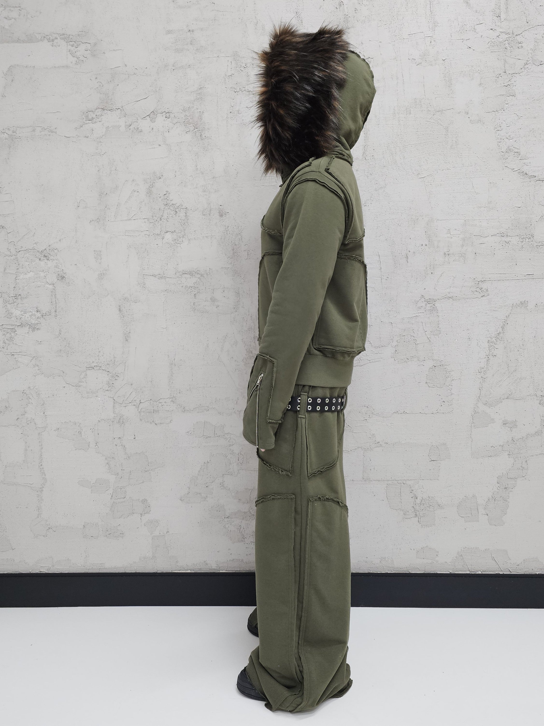 - OPIS PRODUKTU-TO JEST PREORDER, WYSYŁKA SETÓW Z DROPU OZ3LL BĘDZIE REALIZOWANA PO 11.02.2026. KUPUJĄC W PREORDERZE MASZ RABAT 15%- Set z dropu /OZ3LL. Warstwowa, bardzo gruba bluza z odpinanym futrem. Stalowe zamki na rękawach, którymi można regulować obwód rękawa. Zapinana po całości z stalowy zamek. Surowo naszyte warstwy o geometrycznych kształtach. Kaptur z szerokim, dużym futrem, które można odpiąć. Warstwowe, bardzo grube spodnie z naszytymi elementami o surowym wykończeniu. Spodnie z niskim stanem i szlufkami na pasek. Konstrukcja nogawki pozwala je skrócić pod wymaganą długość. Limitowany drop.