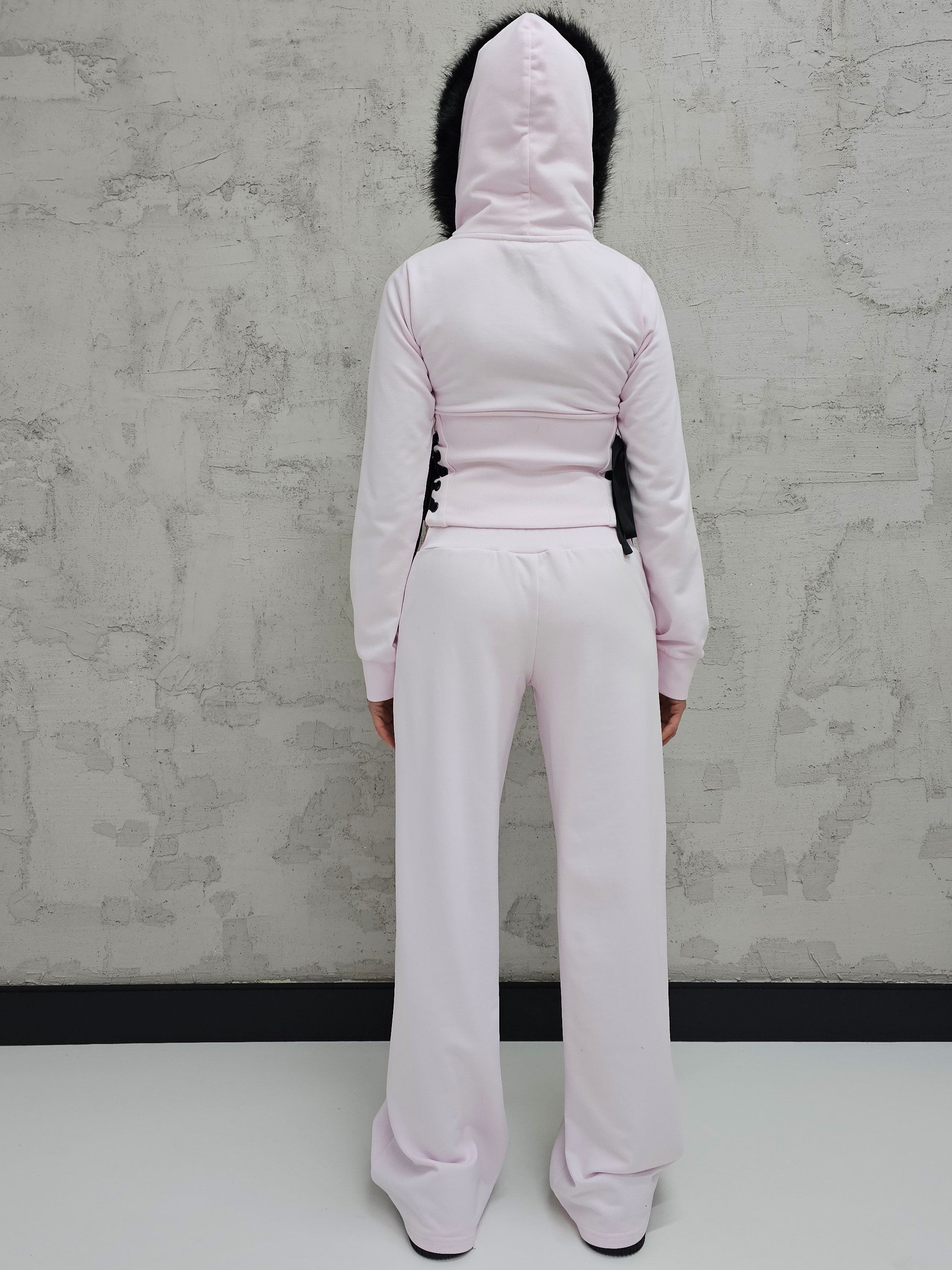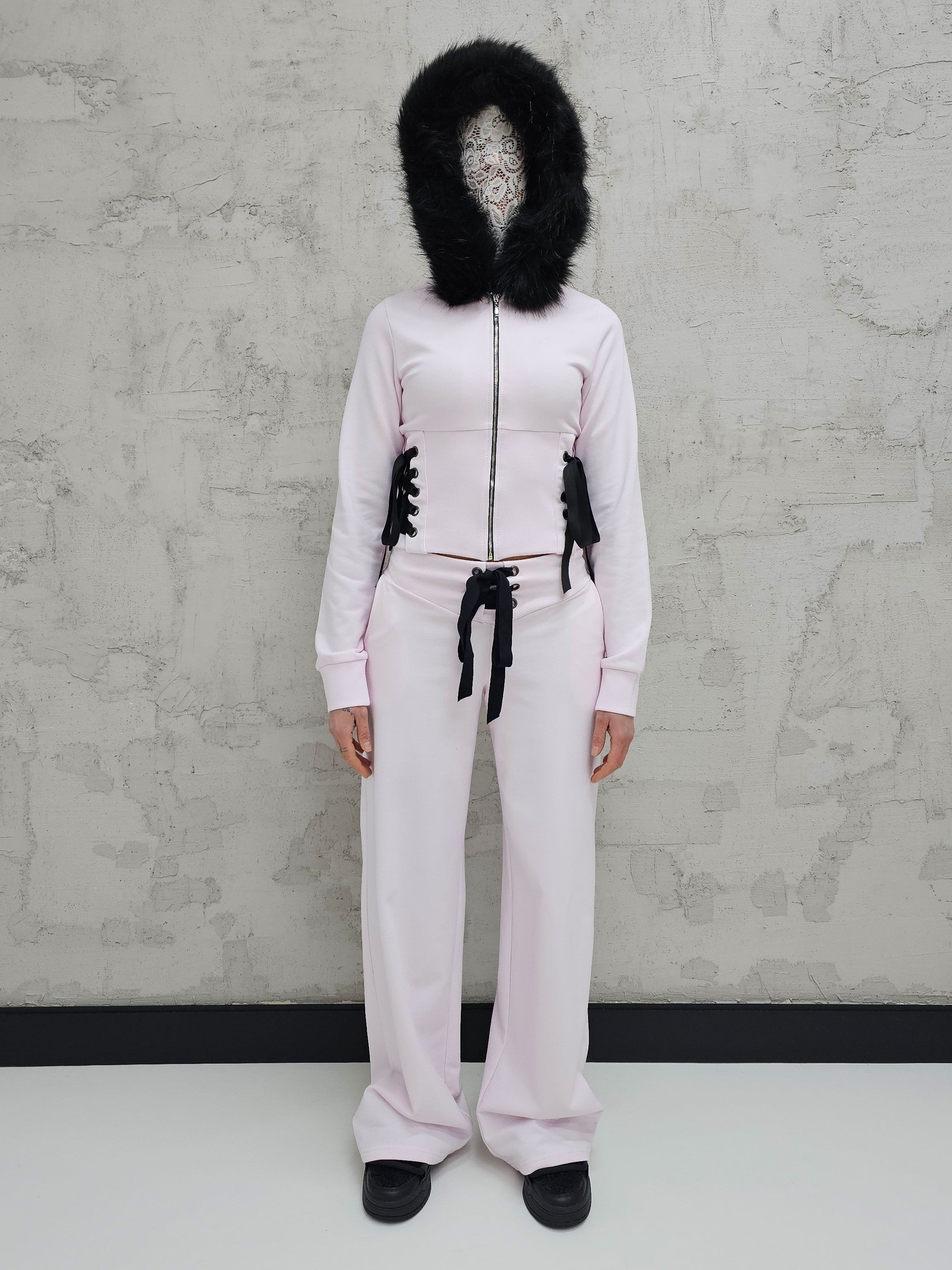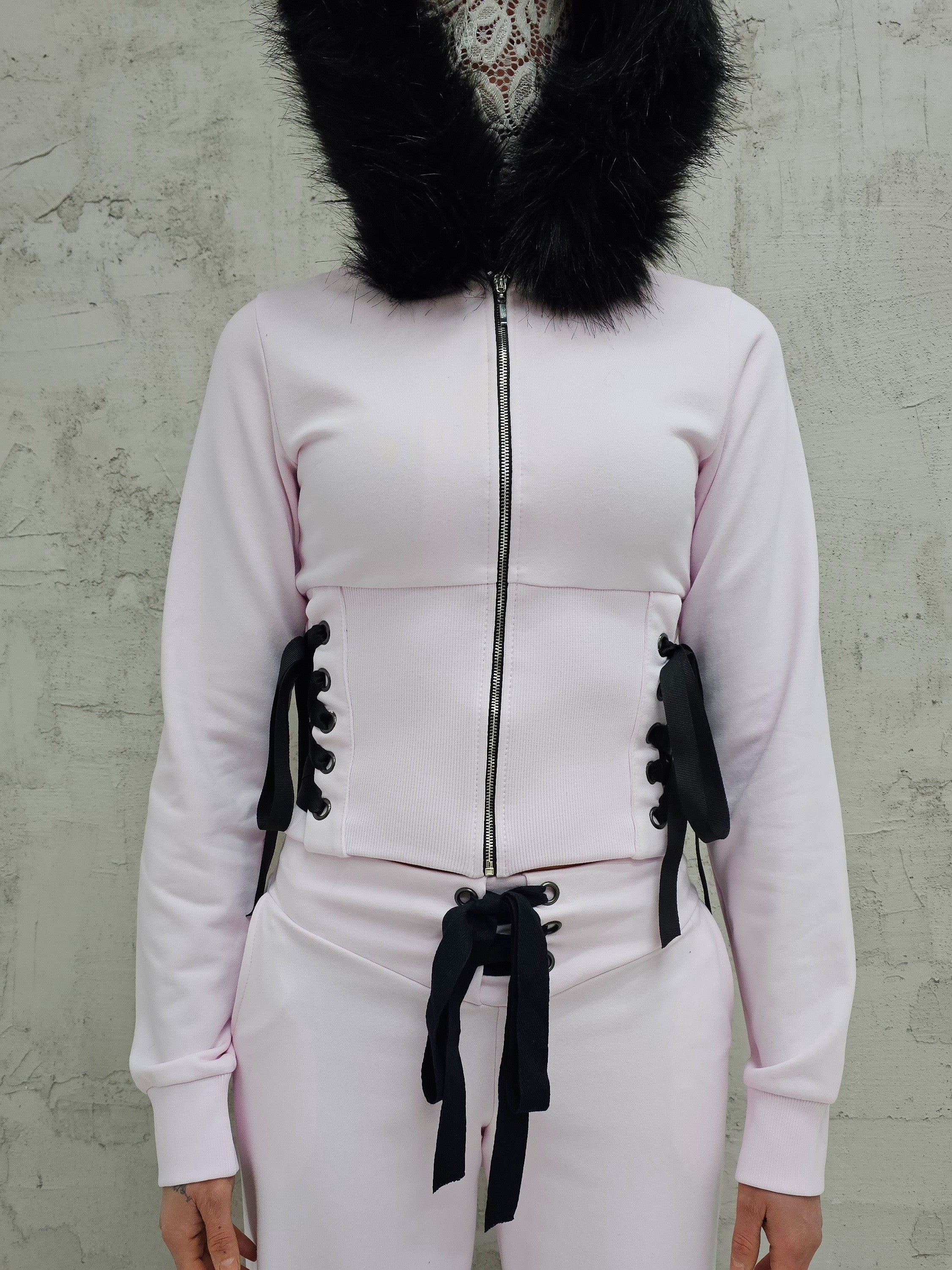 - OPIS PRODUKTU- Unikalny set dresowy T4SHA z dropu Lolita. Set obejmuje dopasowaną bluzę z futrem w kapturze i wiązaniem na bokach. Bluza o fasonie cropped. Spodnie biodrówki z wiązaniem z przodu. Z tyłu w spodniach guma, która pozwala dopasować się do obwodu.
