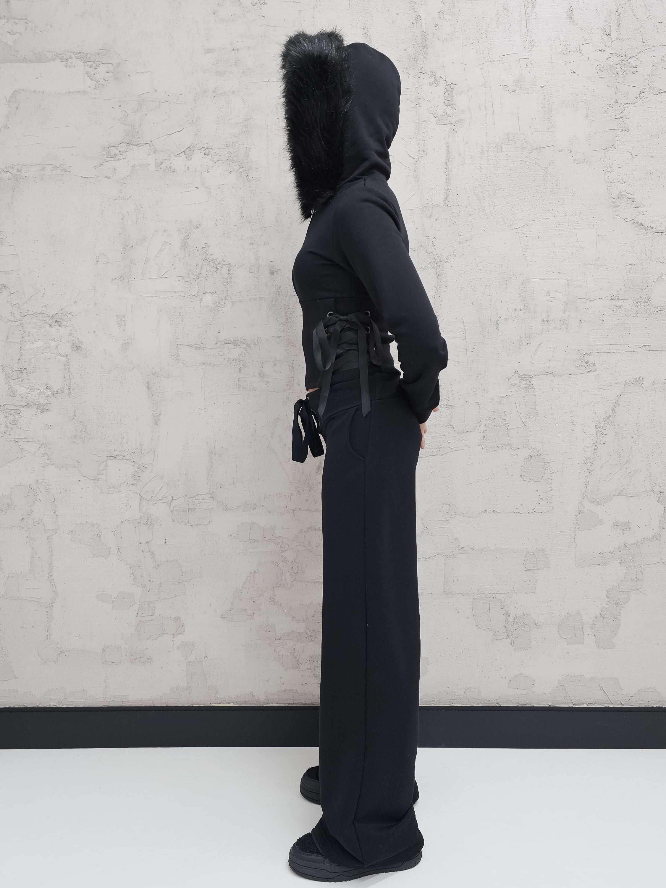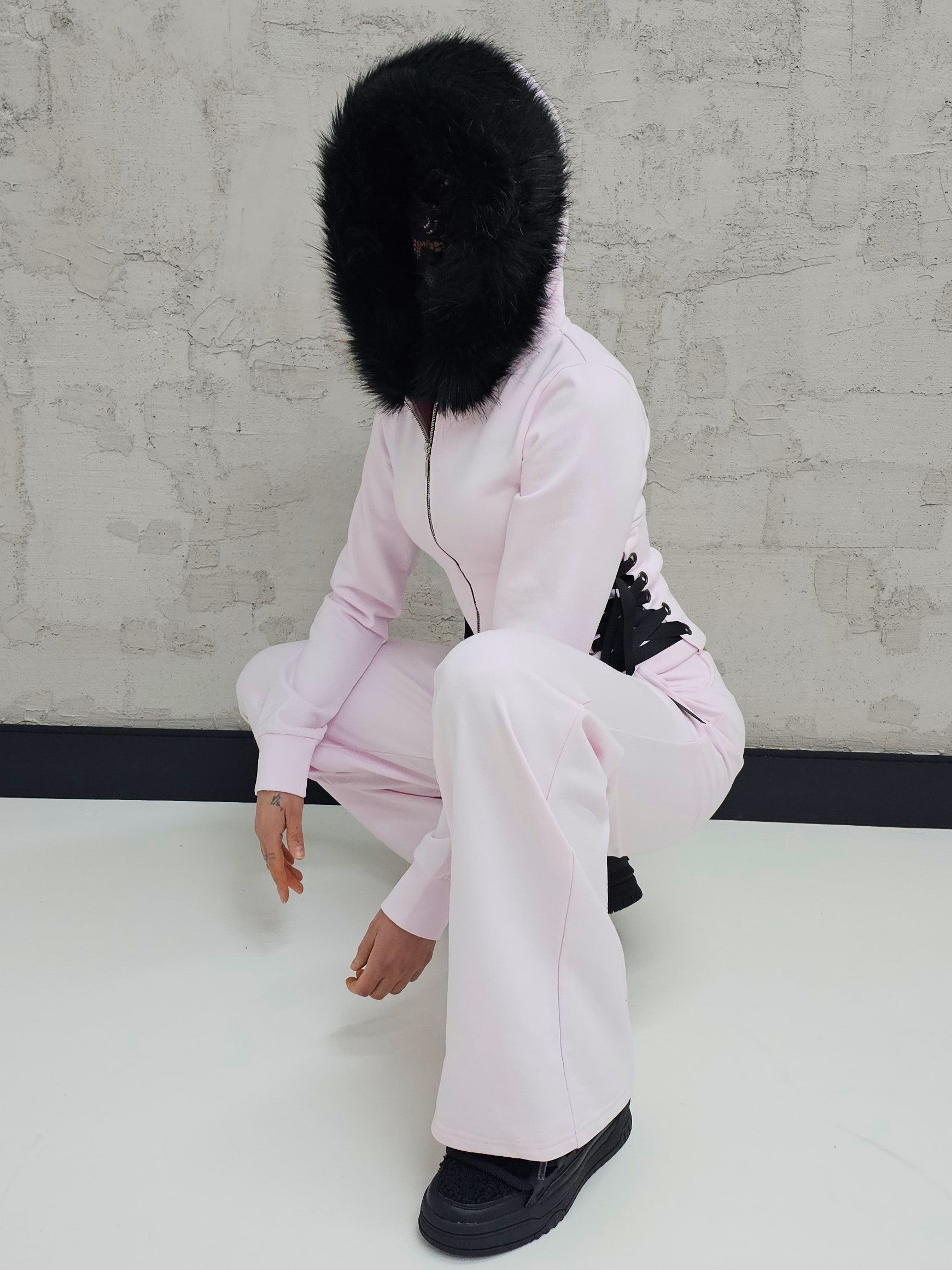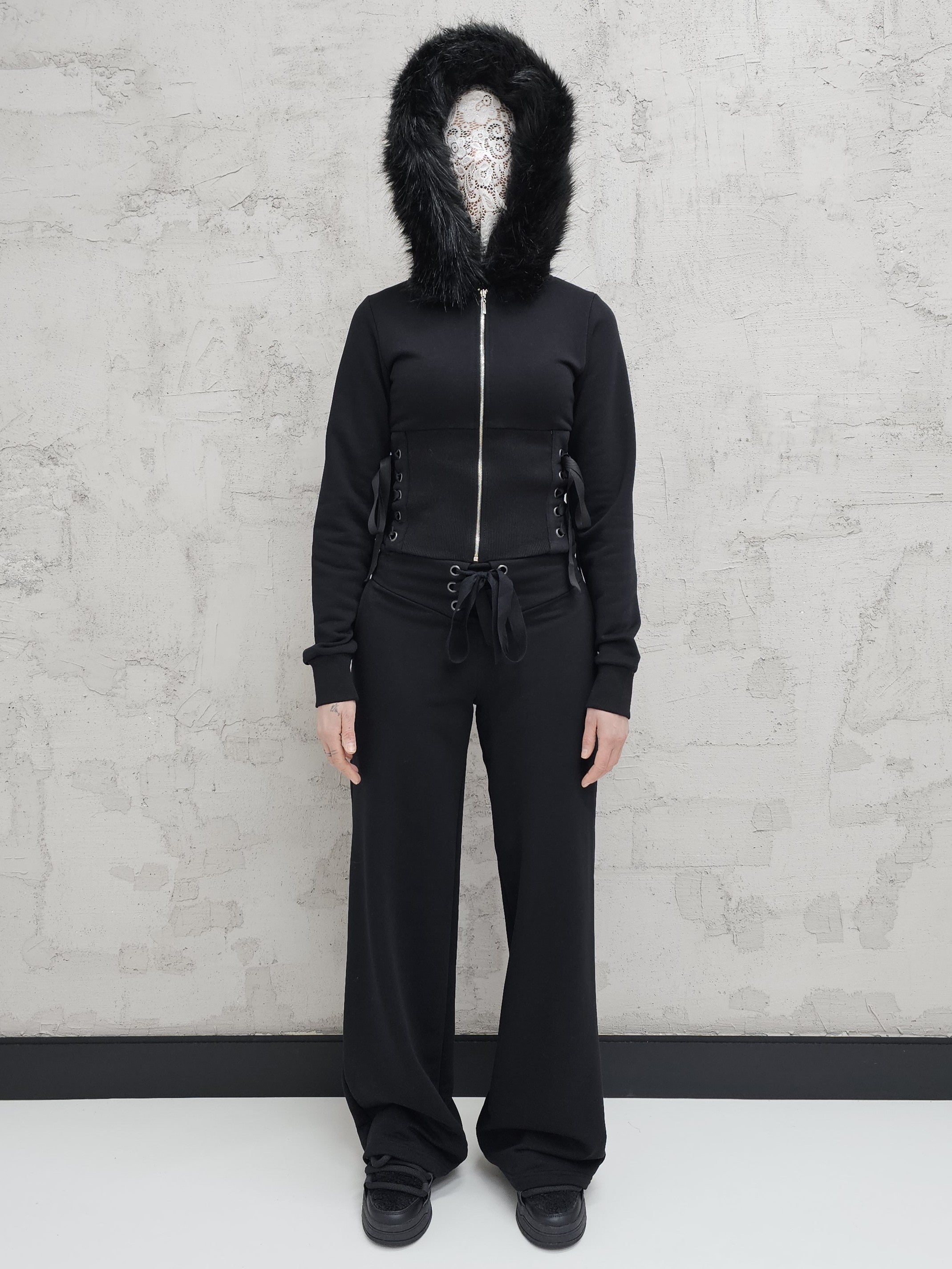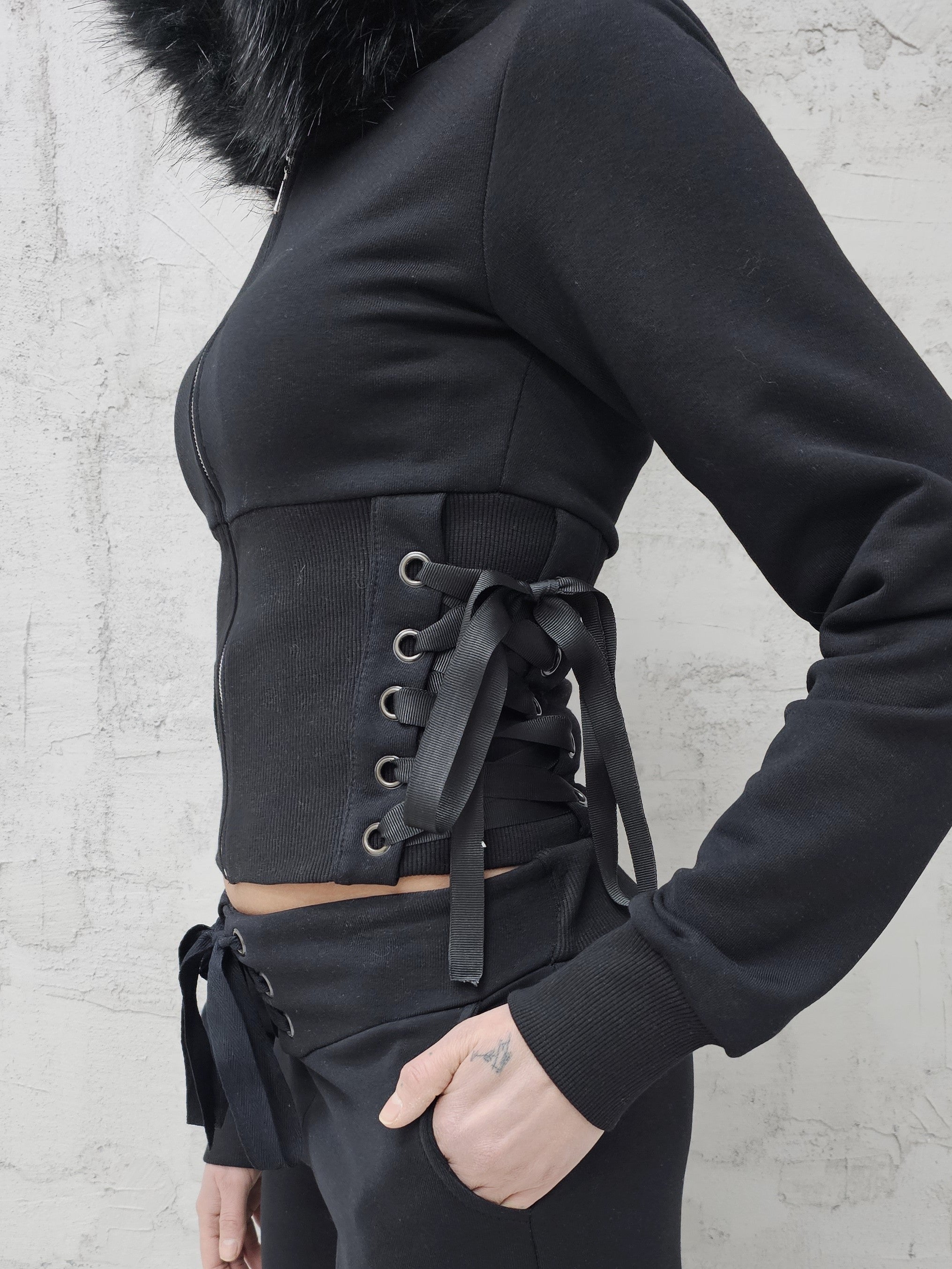 - OPIS PRODUKTU- Unikalny set dresowy T4SHA z dropu Lolita. Set obejmuje dopasowaną bluzę z futrem w kapturze i wiązaniem na bokach. Bluza o fasonie cropped. Spodnie biodrówki z wiązaniem z przodu. Z tyłu w spodniach guma, która pozwala dopasować się do obwodu.